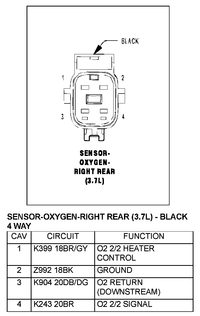 Sensor-Oxygen-Right Rear (3.7L)-Black 4 Way: