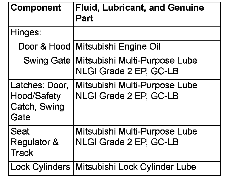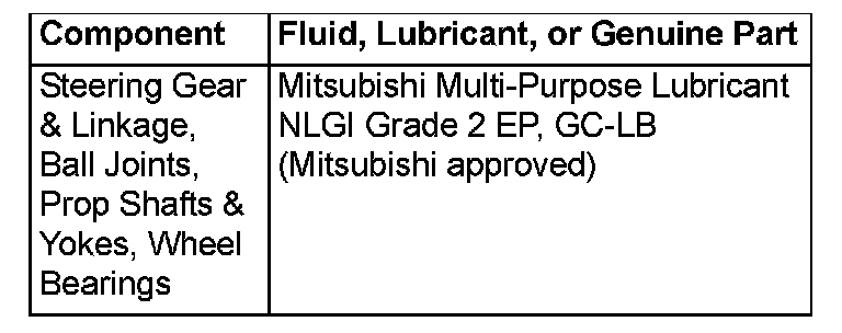 NOTE: Mitsubishi motors recommends Mitsubishi lubricants or lubricants of equal quality.