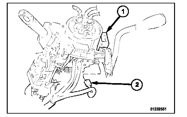 9. Remove the screw (2) that secures the SKREEM (1) to the steering column housing.