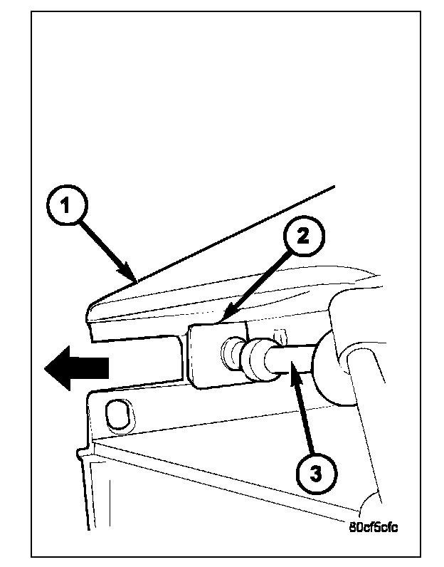 3. Hold throttle in wide open position. While held in this position, slide throttle cable pin (1) from throttle body bellcrank.
