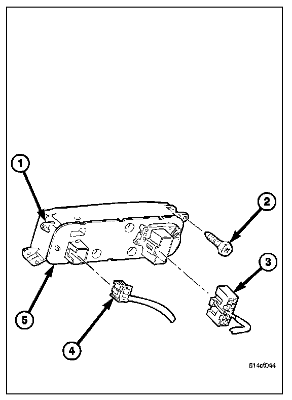 3. Place the center bezel on a workbench and remove the screws (2) that secure the A/C-heater control to the center bezel.