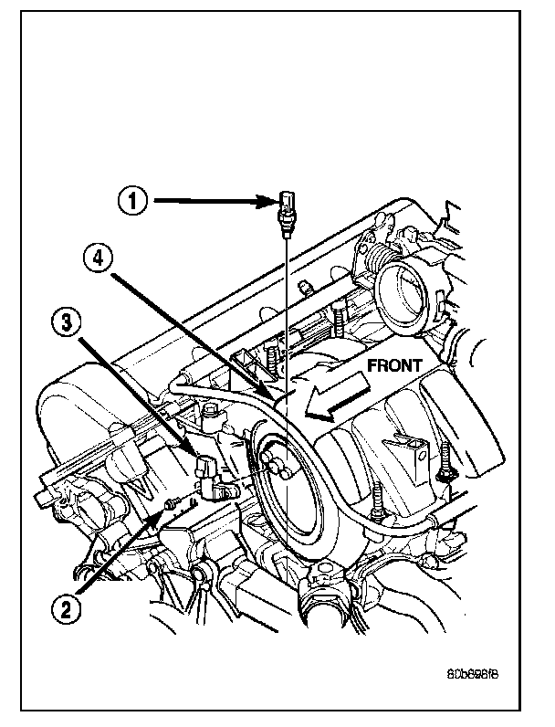 The MAP sensor (3) is located on the front of the intake manifold. An O-ring seals the sensor to the intake manifold.