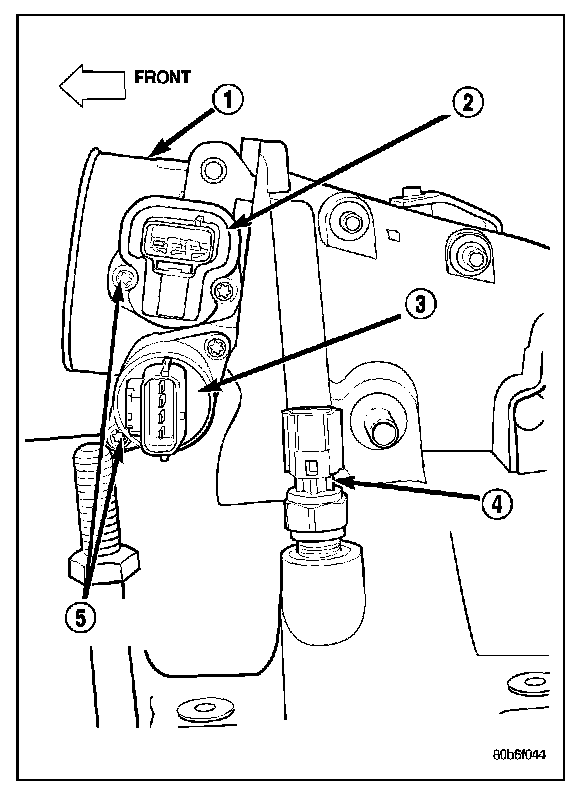 The 3-wire Throttle Position Sensor (TPS) is mounted on the throttle body (2) and is connected to the throttle blade shaft.