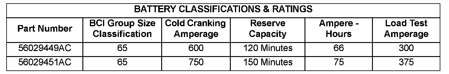 BATTERYThe battery Group Size number, the Cold Cranking Amperage (CCA) rating, and the Reserve Capacity (RC) rating or Ampere-Hours (AH) rating can be found on the original equipment battery label. Be certain that a replacement battery has the correct Group Size number, as well as CCA, and RC or AH ratings that equal or exceed the original equipment specification for the vehicle being serviced. Battery sizes and ratings are discussed in more detail below.