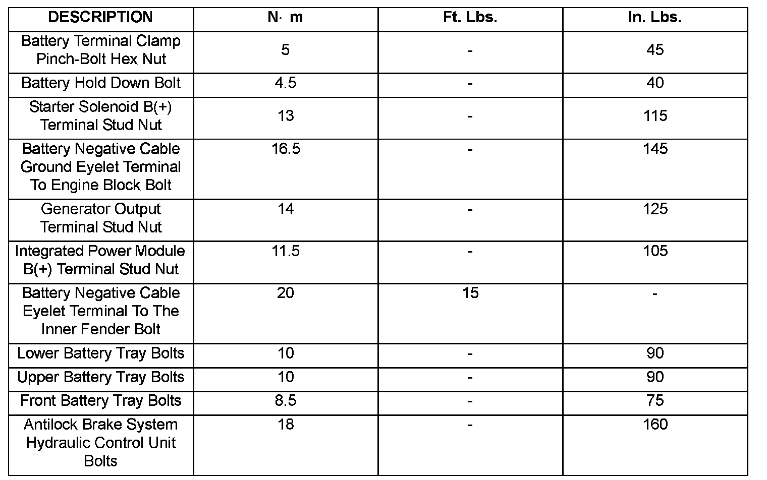 Torque Specifications: