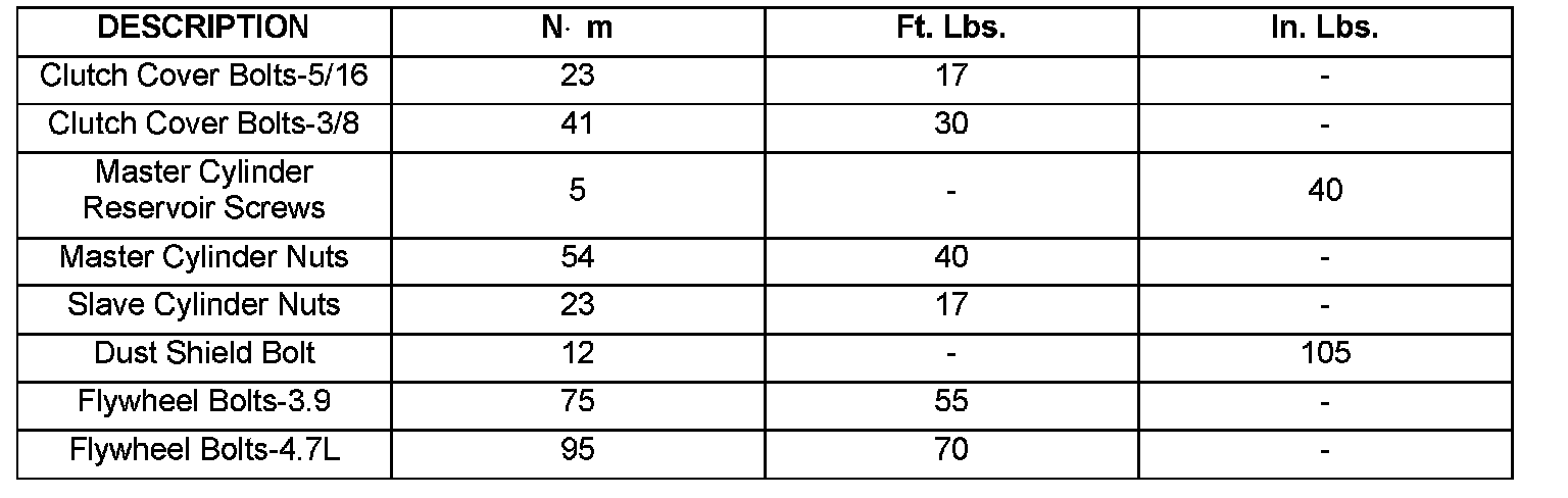 TORQUE SPECIFICATIONS: