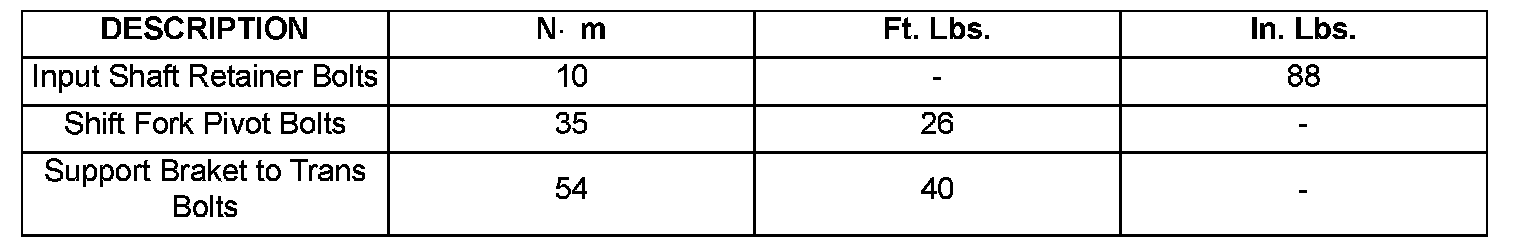 TORQUE SPECIFICATIONS: