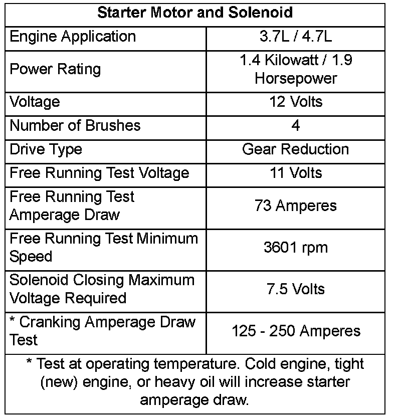 Torque Specifications - Starting System: