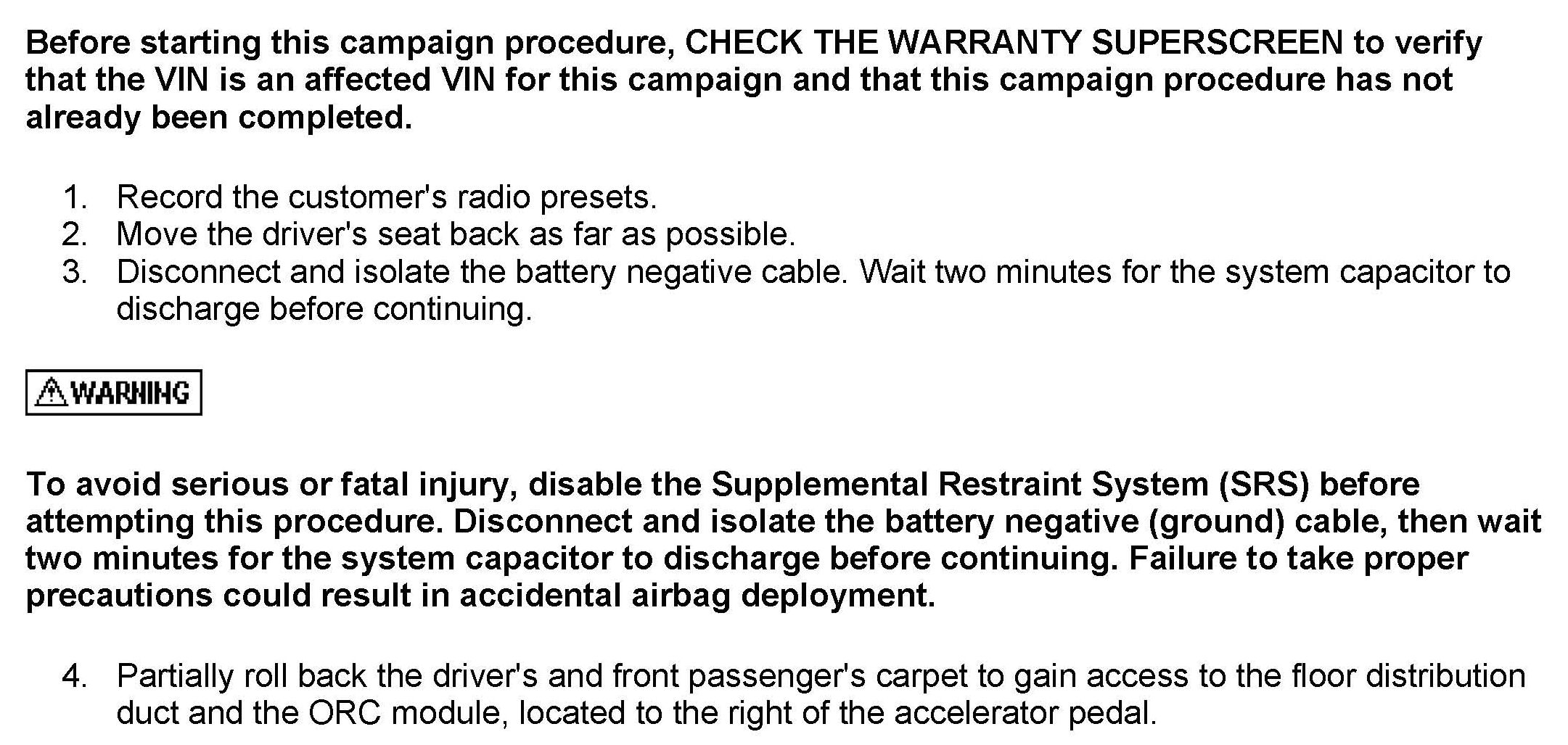 OCCUPANT RESTRAINT CONTROLLER MODULE - SERVICE CAMPAIGN