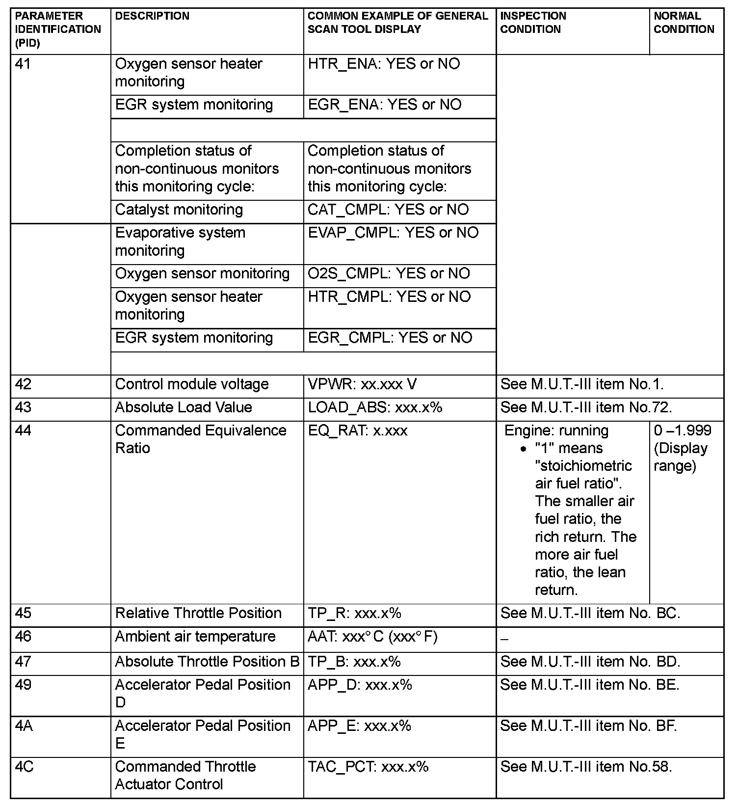 General Scan Tool (GST) Mode 01 Reference Table Part 4: