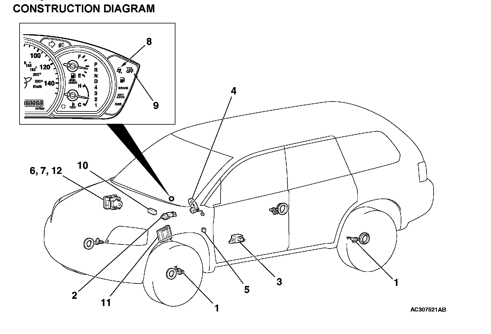 The Traction Control prevents drive force loss during slipping of the drive wheels by automatically applying the brakes and sending engine torque reduction signal to the PCM when the drive wheels slip or when driving on partly low-friction surfaces.