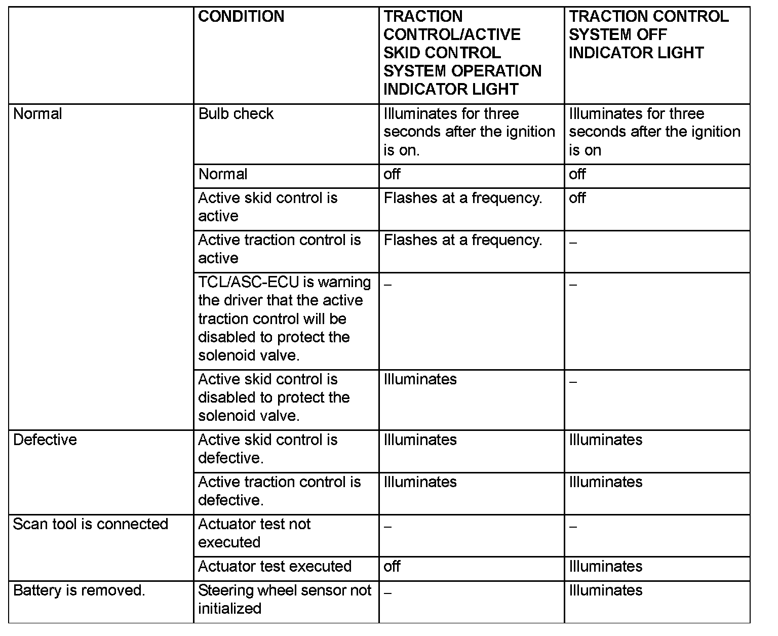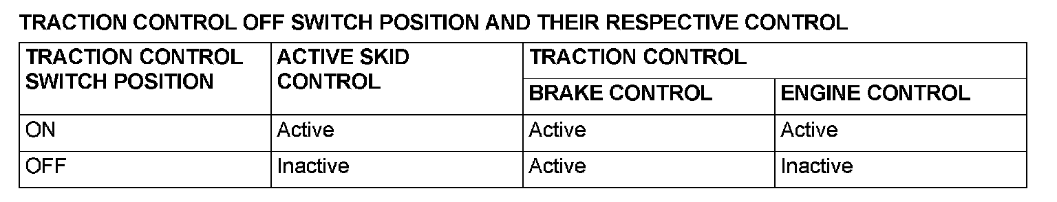 TRACTION CONTROL/ACTIVE SKID CONTROL SYSTEM OPERATION INDICATOR LIGHT AND TRACTION CONTROL SYSTEM OFF INDICATOR LIGHT