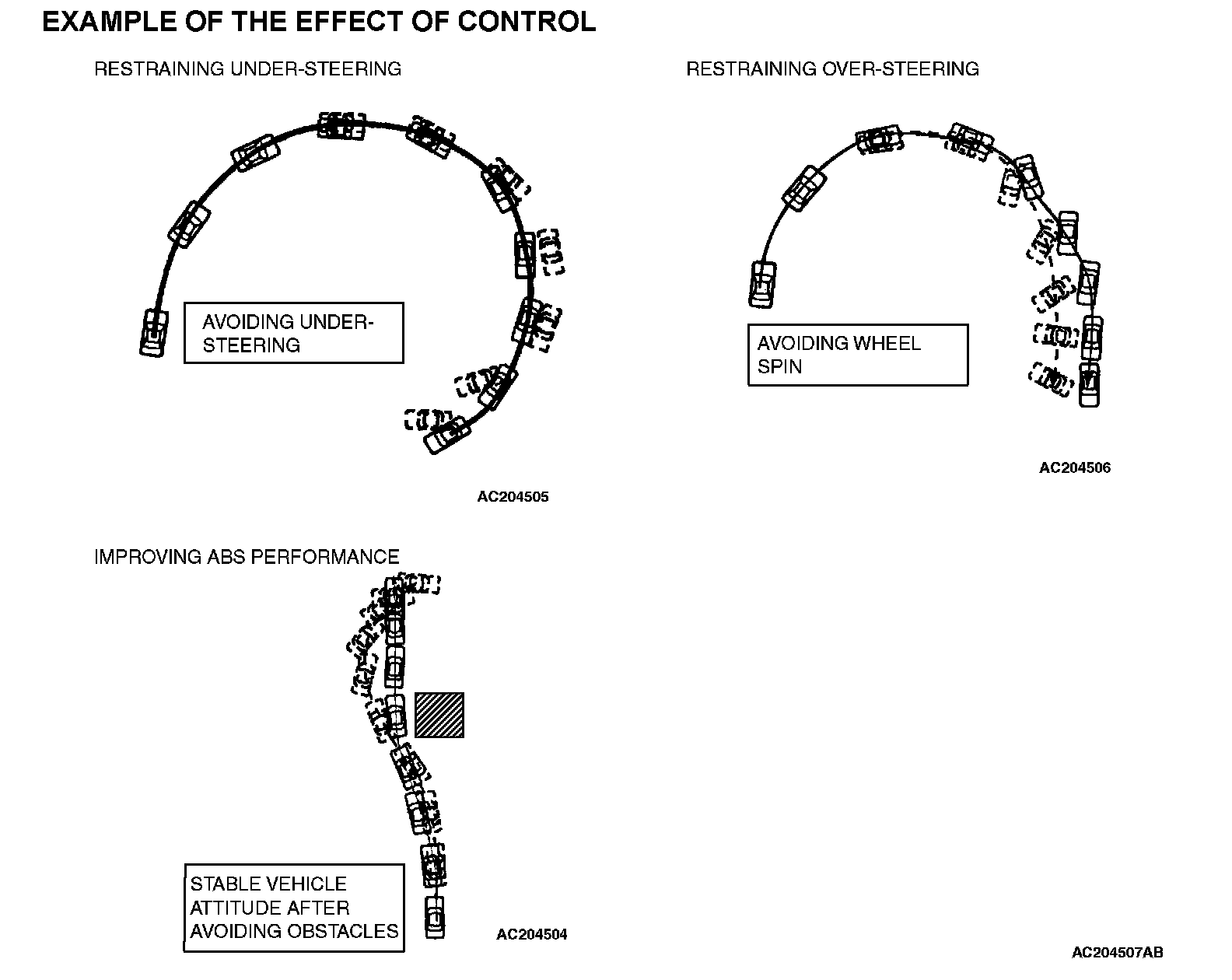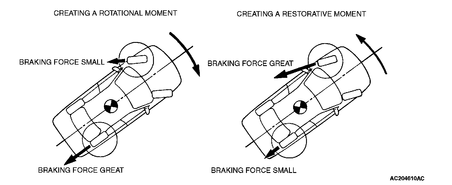 The Active Skid Control manages the vehicle attitude by creating a yaw moment from altering the balance between the cornering force and each wheel's braking mechanism.
