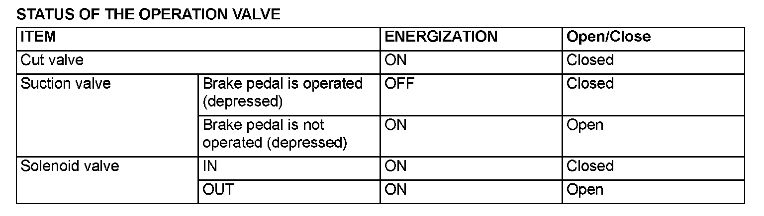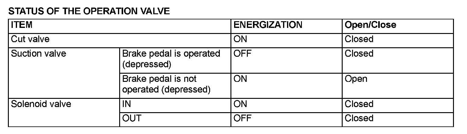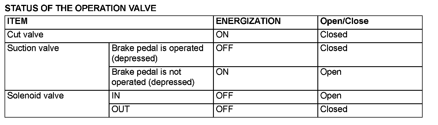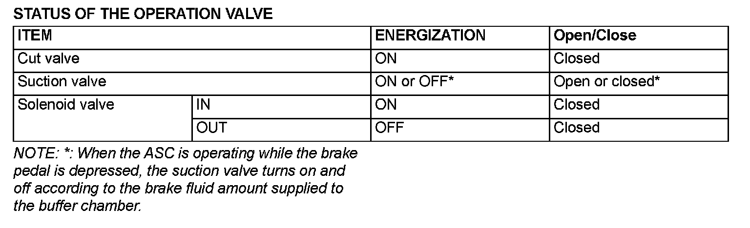 NOTE: *: When the ASC is operating while the brake pedal is depressed, the suction valve turns on and off according to the brake fluid amount supplied to the buffer chamber.