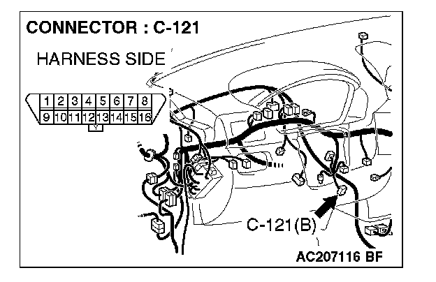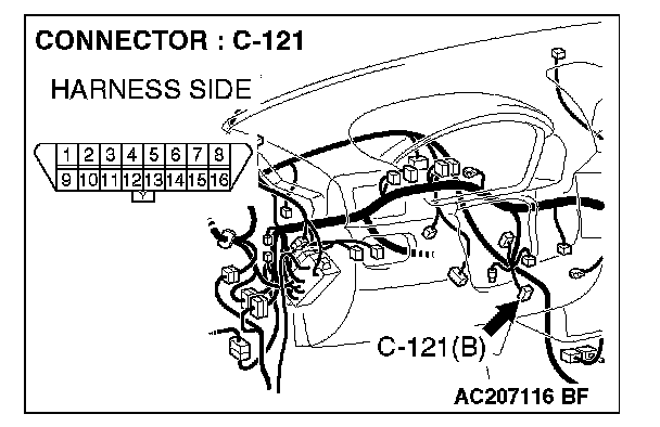 STEP 1. Check data link connector C-121 for loose, corroded or damaged terminals, or terminals pushed back in the connector.