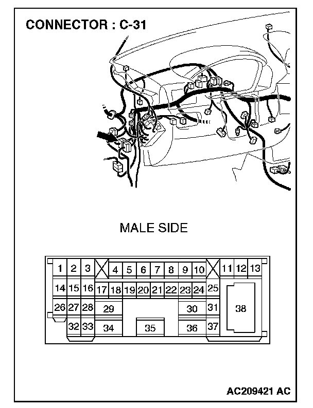STEP 3. Check intermediate connector C-31 for loose, corroded or damaged terminals, or terminals pushed back in the connector.