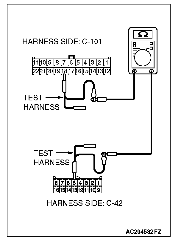 STEP 13. Check the CAN bus lines between joint connector (4) and the A/C-ECU. Measure the resistance between joint connector (4) C-101 and A/C-ECU connector C-42