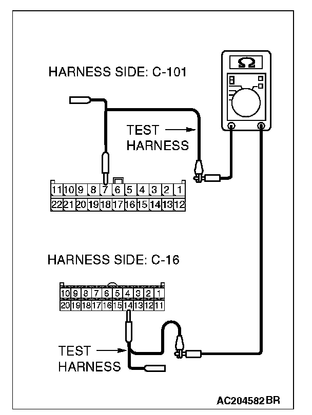 - The test wiring harness should be used.