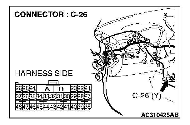 1. Disconnect SRS-ECU connector C-26.