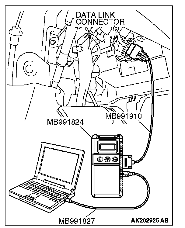 1. Connect scan tool MB991958 to the data link connector.