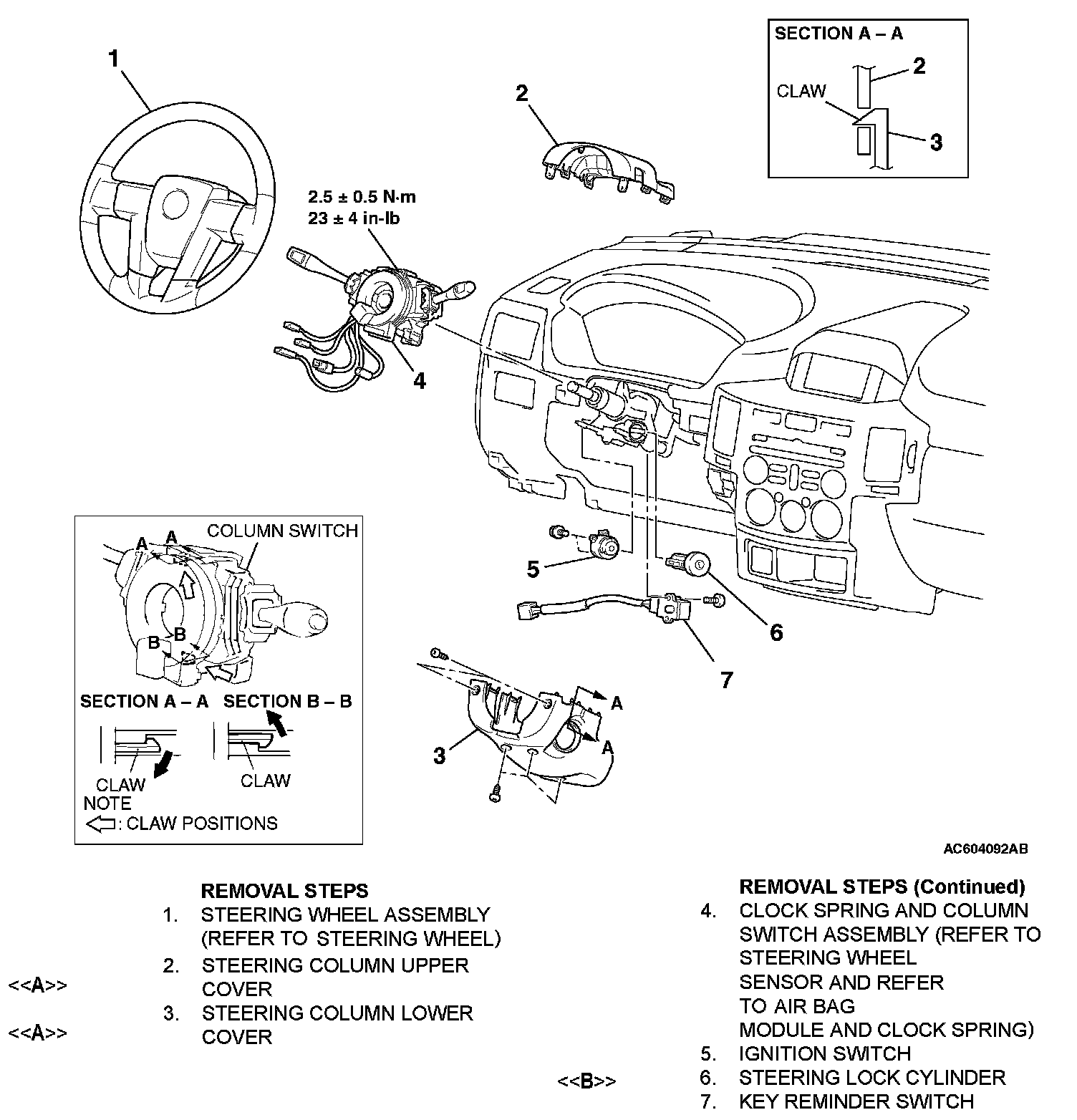 IGNITION SWITCHRemoval Steps 1-7: