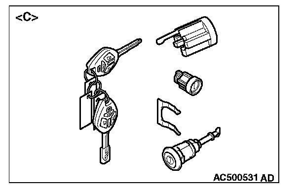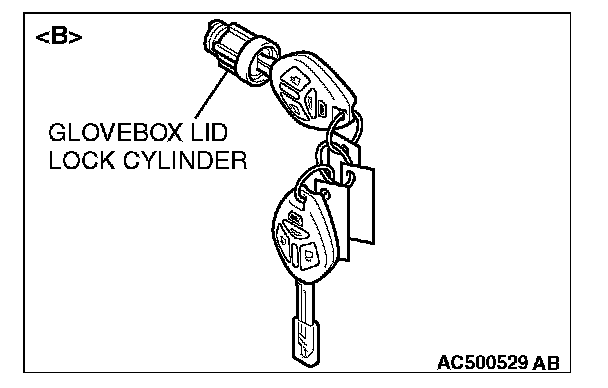 - Do not register the ignition keys other than the ignition key that starts the engine. (When replacing by the door lock key cylinder of illustration or the glove box lid lock cylinder of illustration , the engine cannot start if the encrypted code is registered with the bar code on the ignition key supplied simultaneously. If the ignition key using for each lock cylinder and starting engine is used as a common ignition key, replace by the key set of illustration