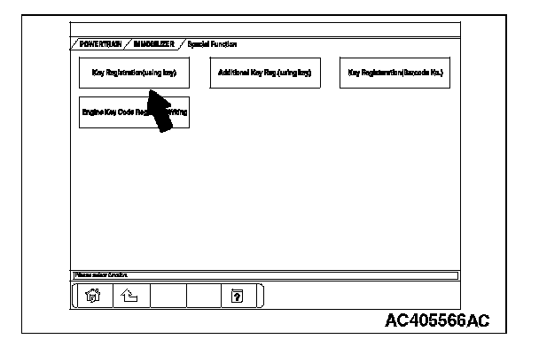 Encrypted Code Registration Using Ignition Key [Registration Using Scan Tool MB991958 (M.U.T.-III Sub Assembly)]