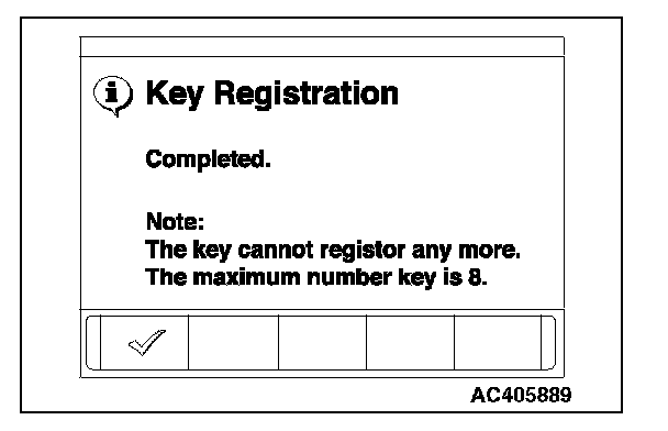 10. A maximum of eight ignition keys can be registered. When the registration of the eighth ignition key is finished, key registration completion menu is displayed. Press the OK button and finish the ignition key registration.