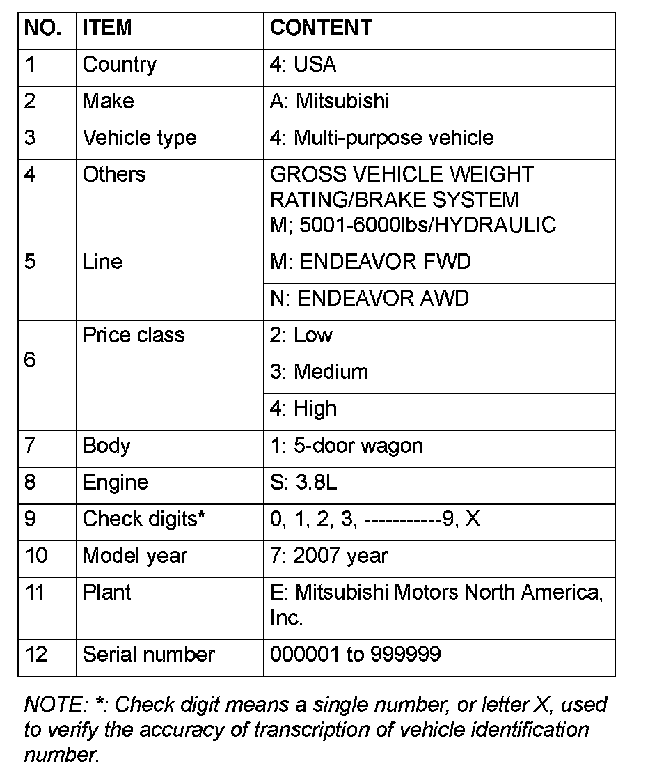NOTE: *: Check digit means a single number, or letter X, used to verify the accuracy of transcription of vehicle identification number.