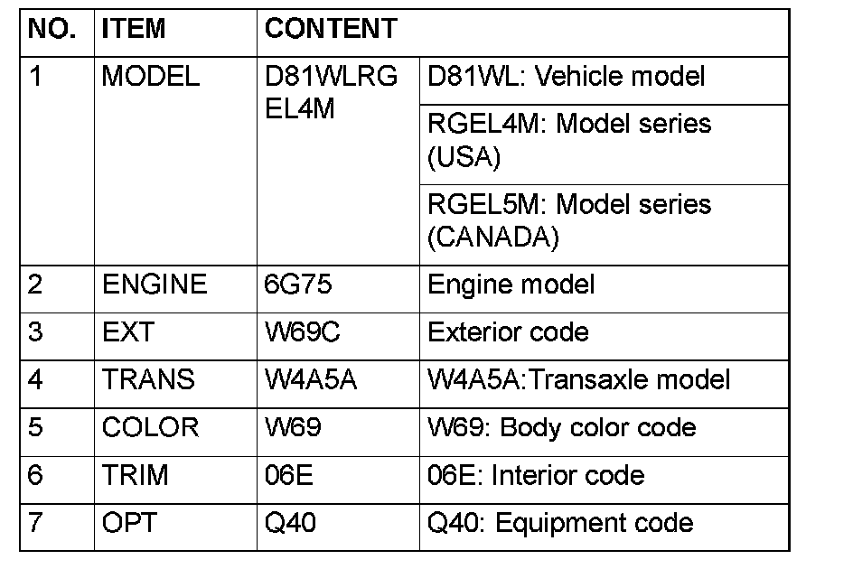 In order to protect against theft, a Vehicle Identification Number (VIN) is attached as a plate or label to the following major parts of the engine and transaxle, as well as main outer panels: Engine cylinder block, Transaxle housing, Fender, Doors, lift-gate, Quarter panel, Hood, Bumpers
