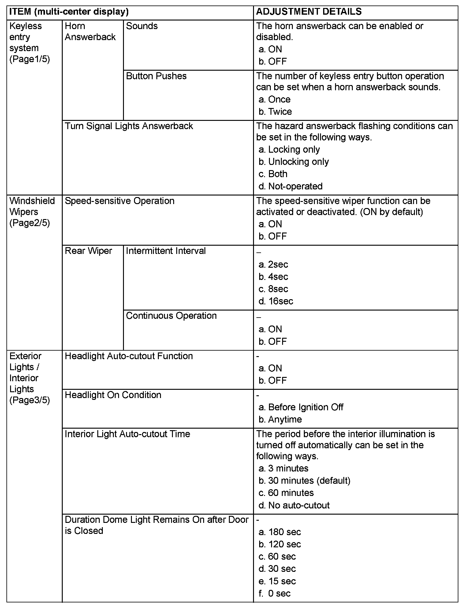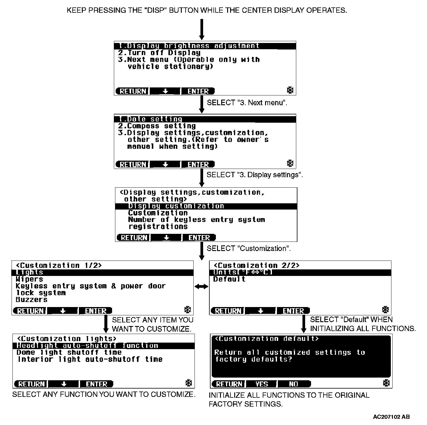 ADJUSTMENT BY OPERATING THE MULTI-CENTER DISPLAY