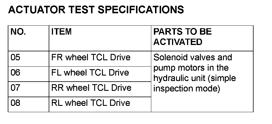 NOTE: If the TCL/ASC-ECU runs down, actuator testing cannot be carried out.