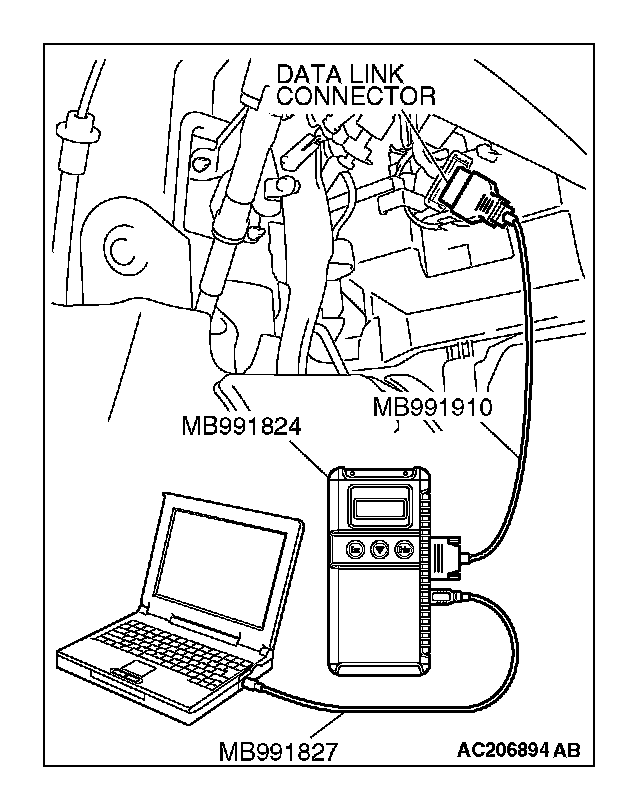 (1) Connect scan tool MB991958 to the data link connector.