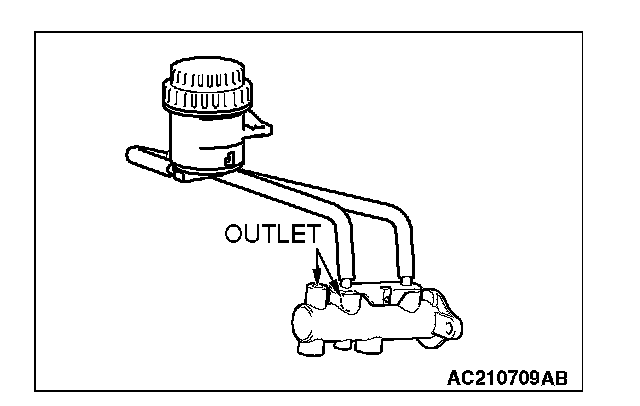 The master cylinder used has no check valve, so if bleeding is carried out by the following procedure, bleeding of air from the brake pipeline will become easier. (When brake fluid is not contained in the master cylinder).