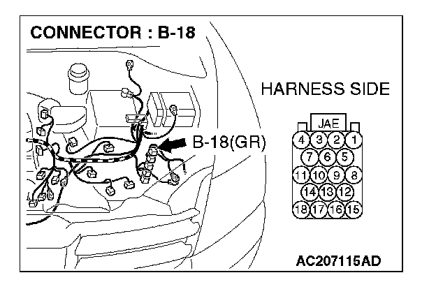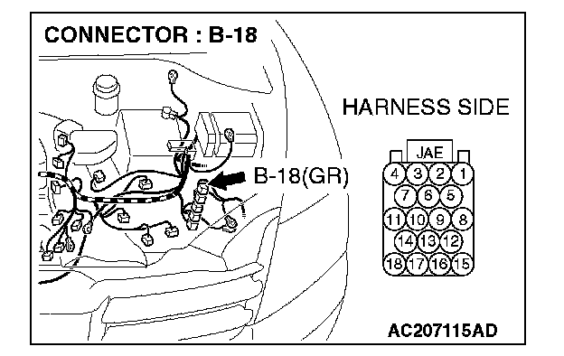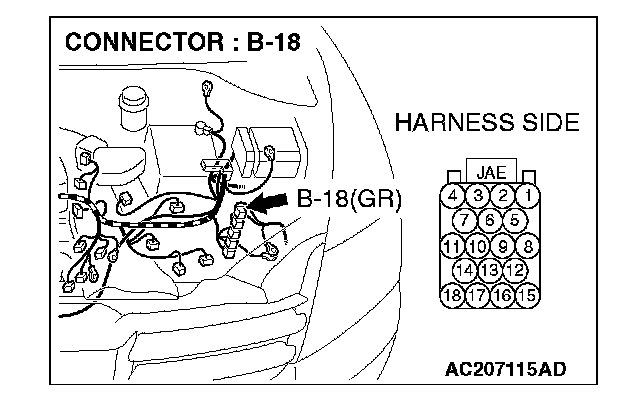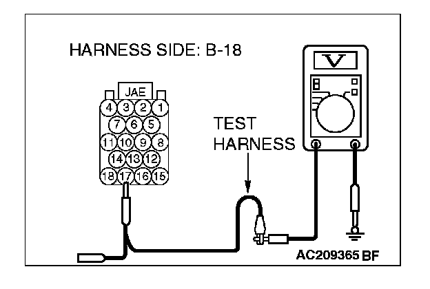 3. Measure the voltage between joint connector (4) terminal 18 and body ground.