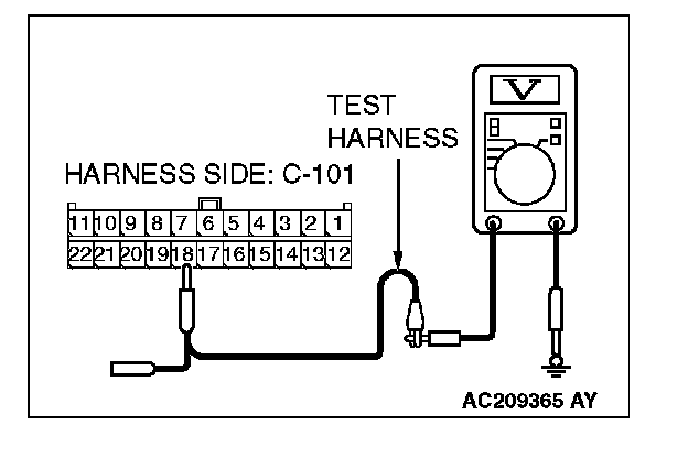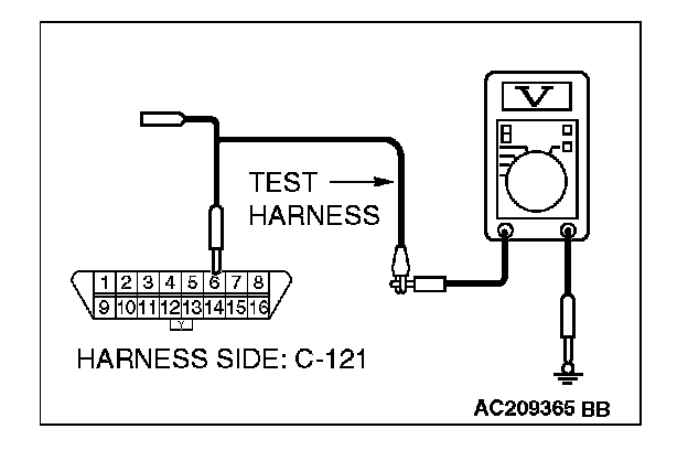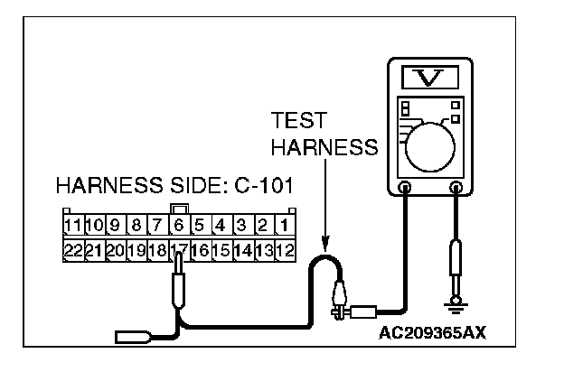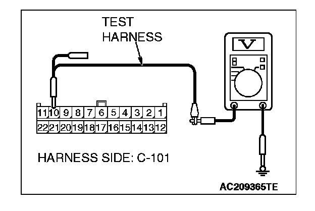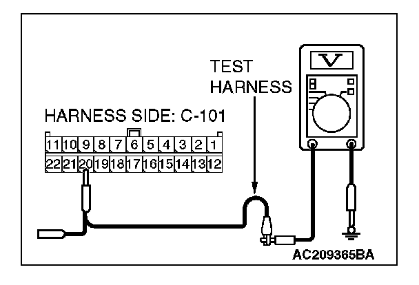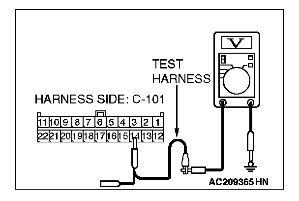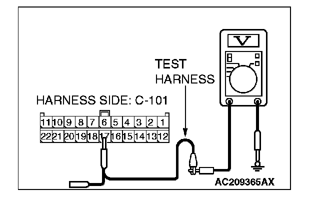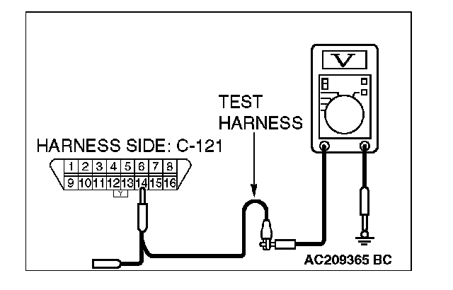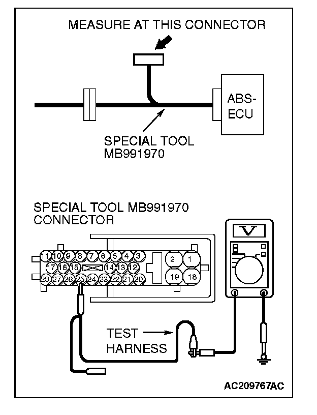 4. Measure the voltage between special tool MB991970 (ABS check harness) connector terminal 25 and body ground.