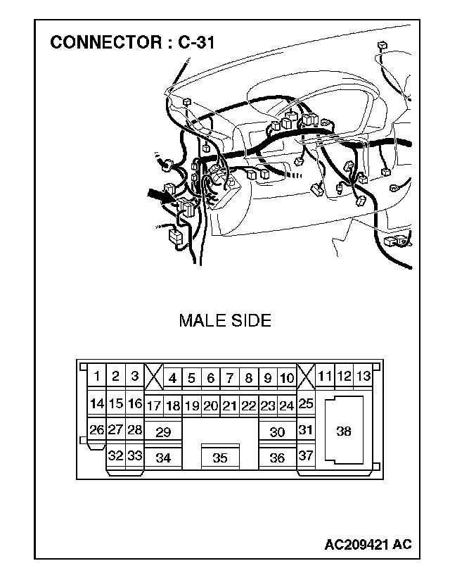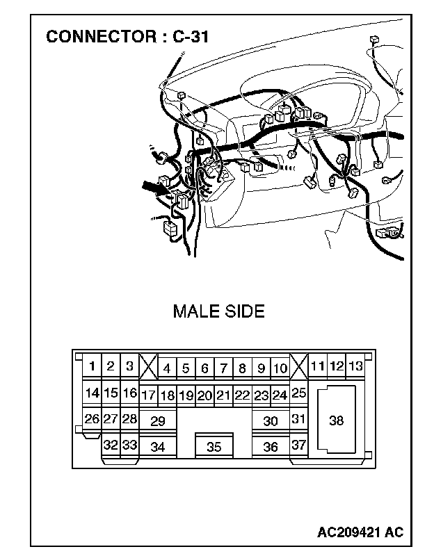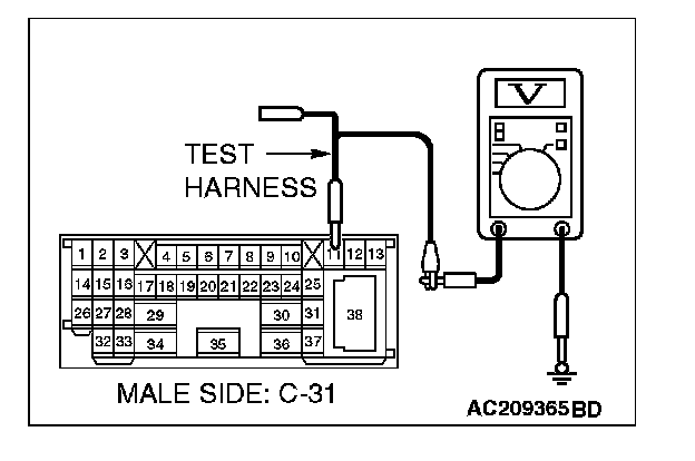 1. Disconnect intermediate connector C-31, and measure the voltage at the male side (at front wiring harness side).