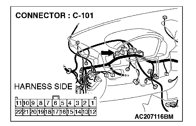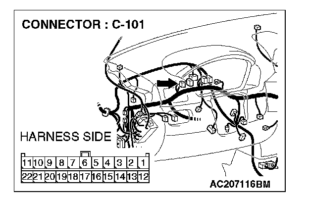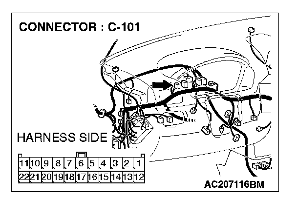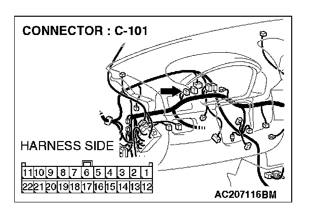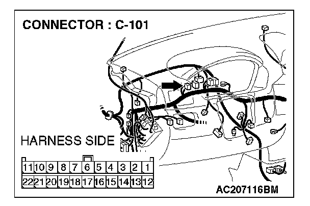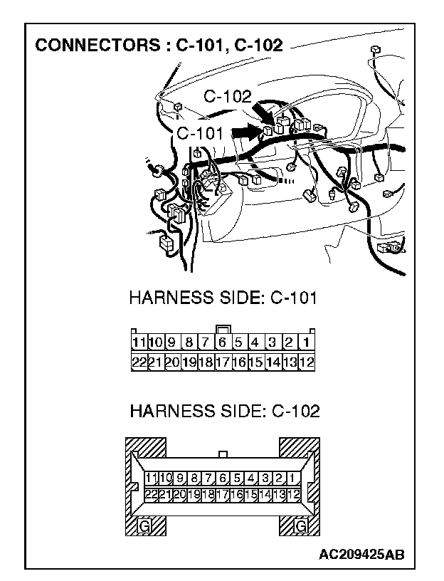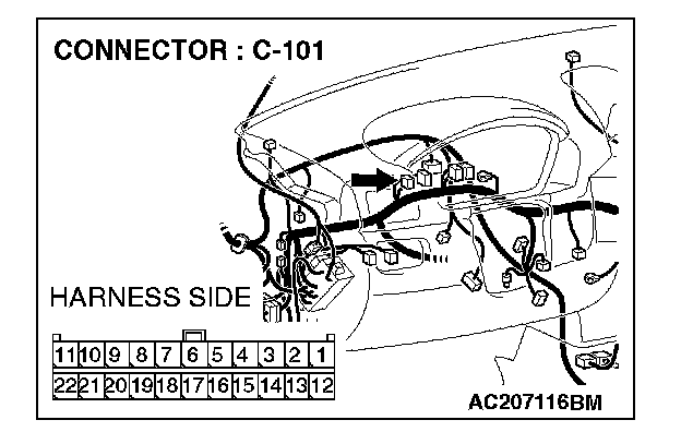 STEP 6. Check joint connector (4) C-101 for loose, corroded or damaged terminals, or terminals pushed back in the connector.