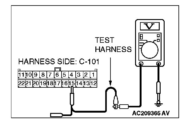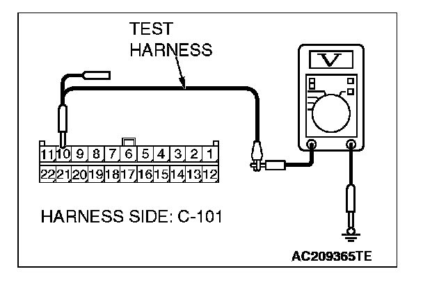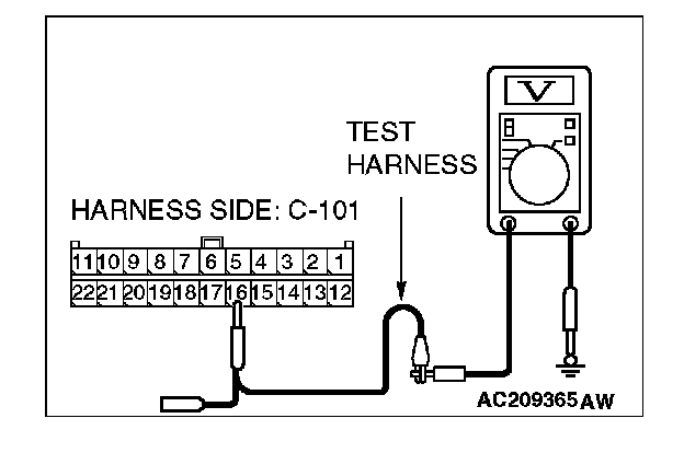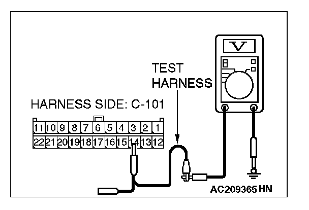 2. Connect special tool MB991970 (ABS check harness) to the ABS/TCL-ECU and the wiring harness, and measure the voltage at special tool MB991970 (ABS check harness).