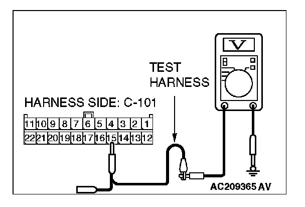 1. Disconnect intermediate connector C-31 and joint connector (4) C-101, and measure the voltage at the wiring harness side of joint connector (4) C-101.