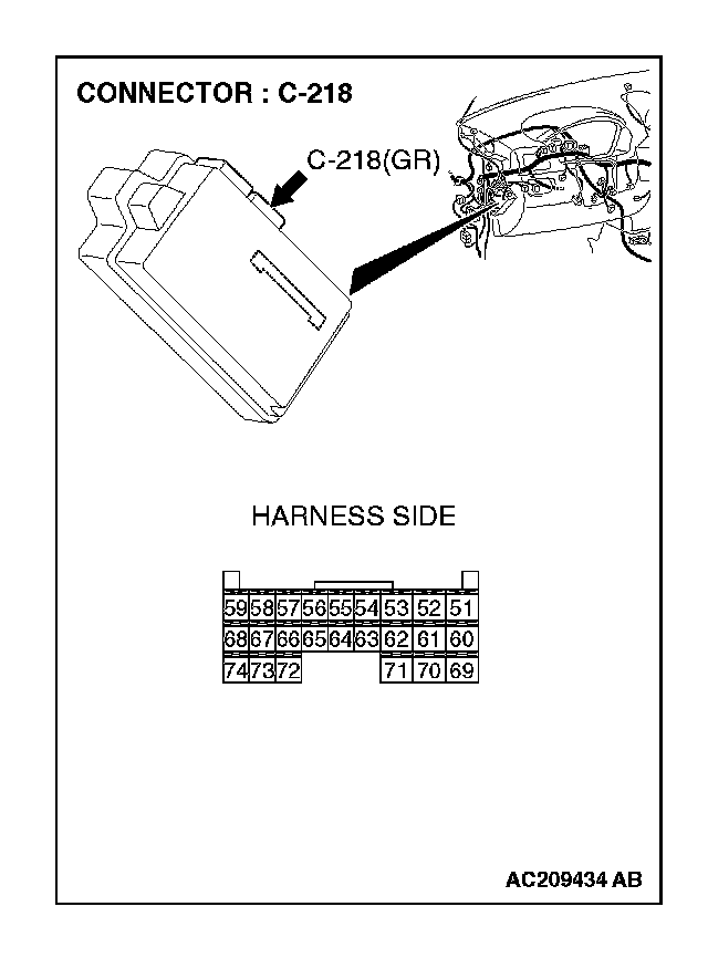 STEP 10. Check ETACS-ECU connector C-218 for loose, corroded or damaged terminals, or terminals pushed back in the connector.