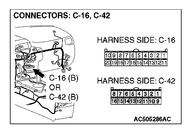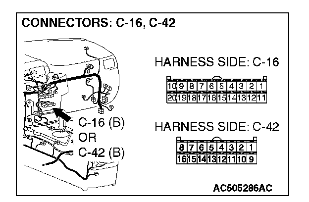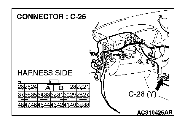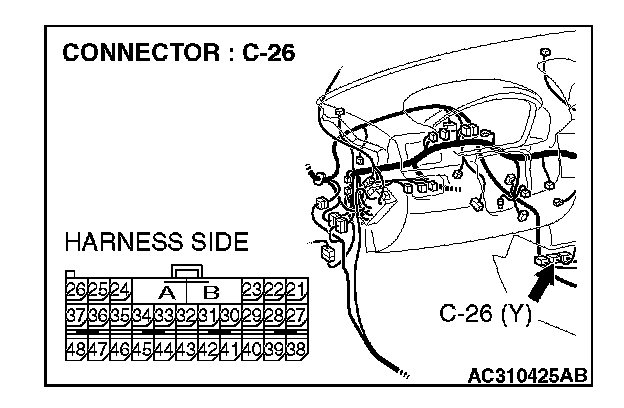 STEP 16. Check SRS-ECU connector C-26 for loose, corroded or damaged terminals, or terminals pushed back in the connector.