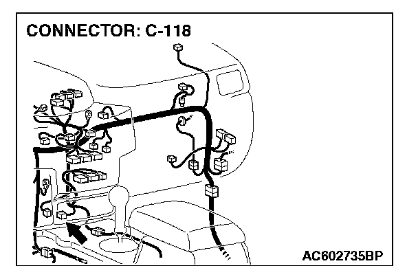 STEP 19. Check TPMS receiver connector C-118 for loose, corroded or damaged terminals, or terminals pushed back in the connector.