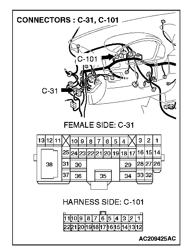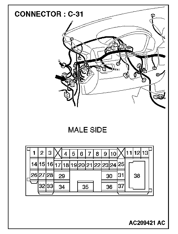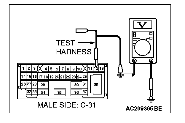 1. Disconnect intermediate connector C-31, and measure the voltage at the male side (at front wiring harness side).