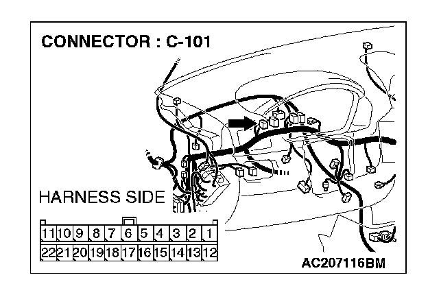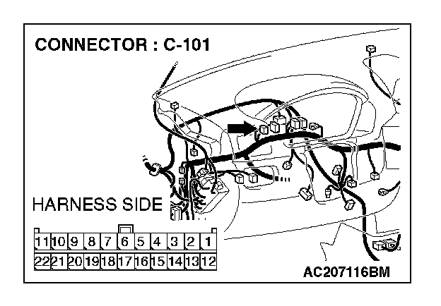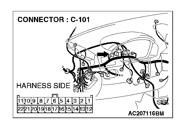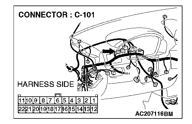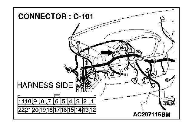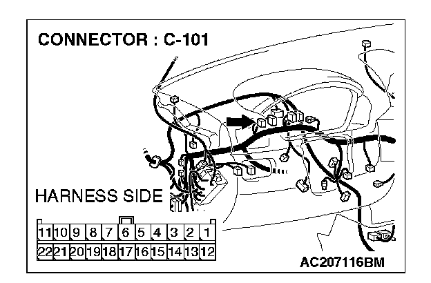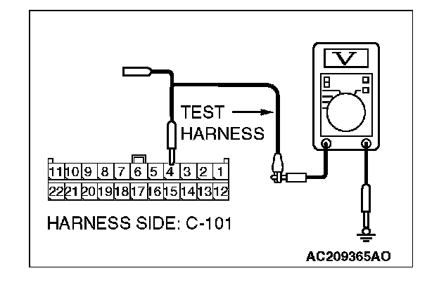 1. Disconnect joint connector (4) C-101, and measure the voltage at the wiring harness side of joint connector (4) C-101.