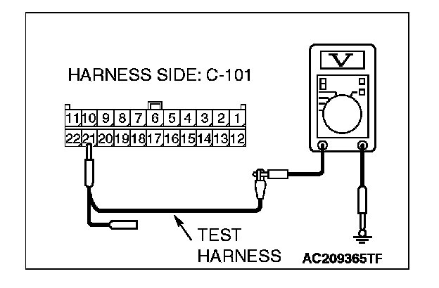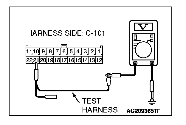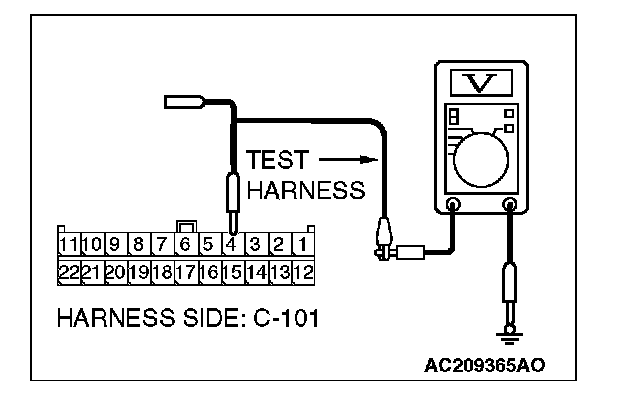 1. Disconnect intermediate connector C-31 and joint connector (4) C-101, and measure the voltage at the wiring harness side of joint connector (4) C-101.