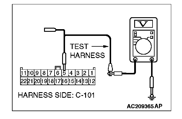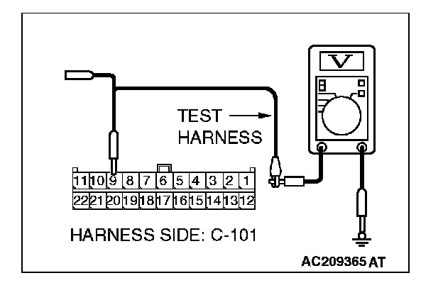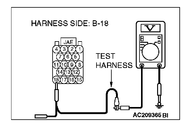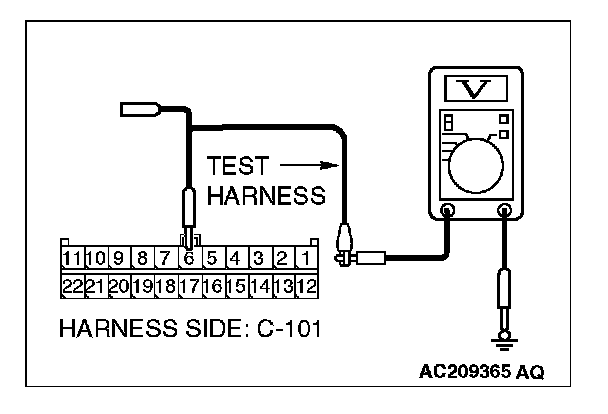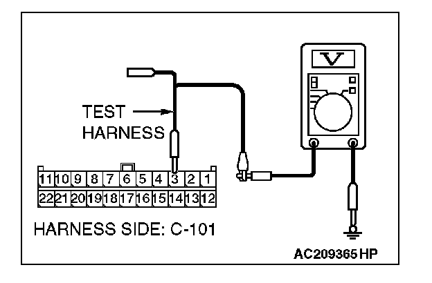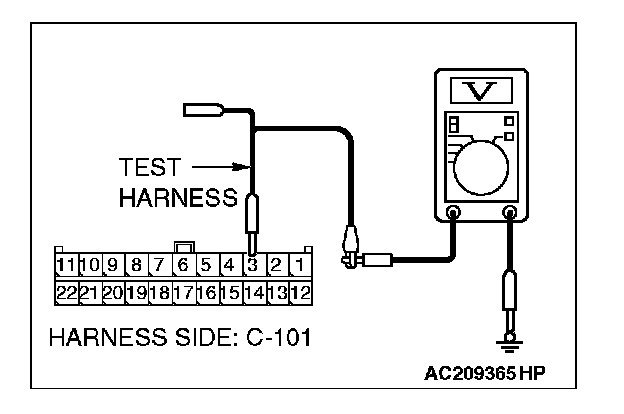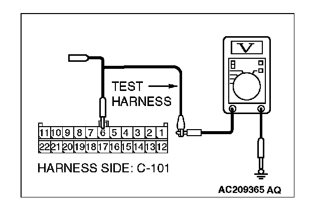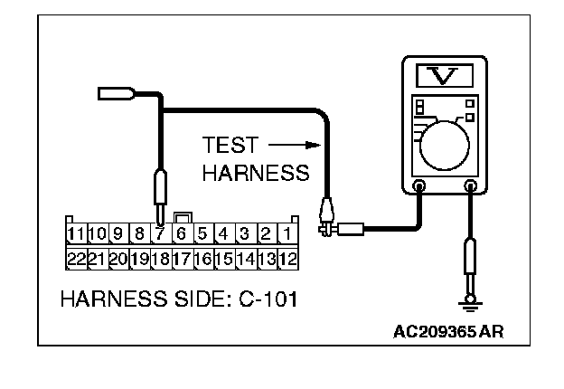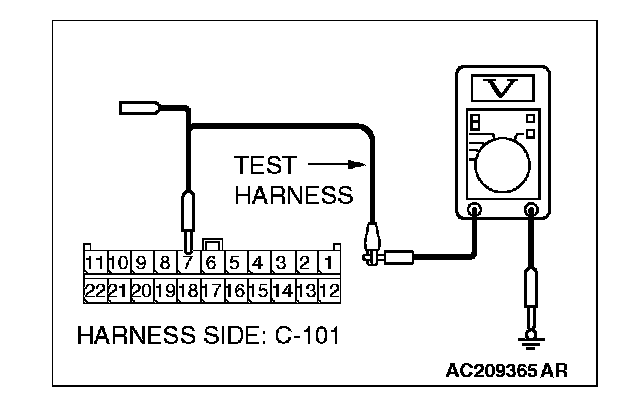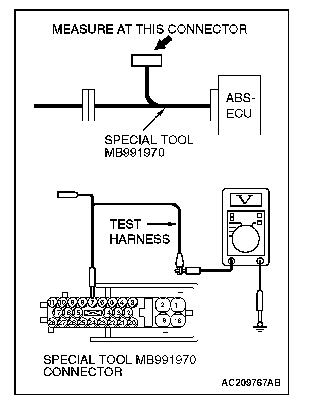 4. Measure the voltage between special tool MB991970 (ABS check harness) connector terminal 7 and body ground.
