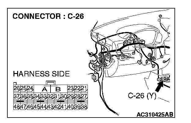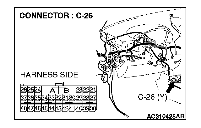 STEP 39. Check SRS-ECU connector C-26 for loose, corroded or damaged terminals, or terminals pushed back in the connector.