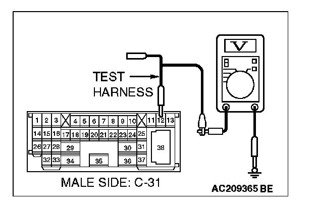 3. Measure the voltage between intermediate connector C-31 terminal 12 and body ground.