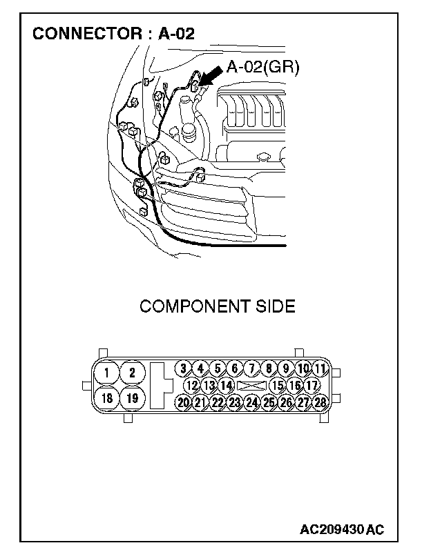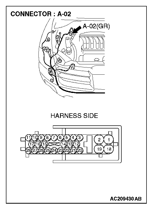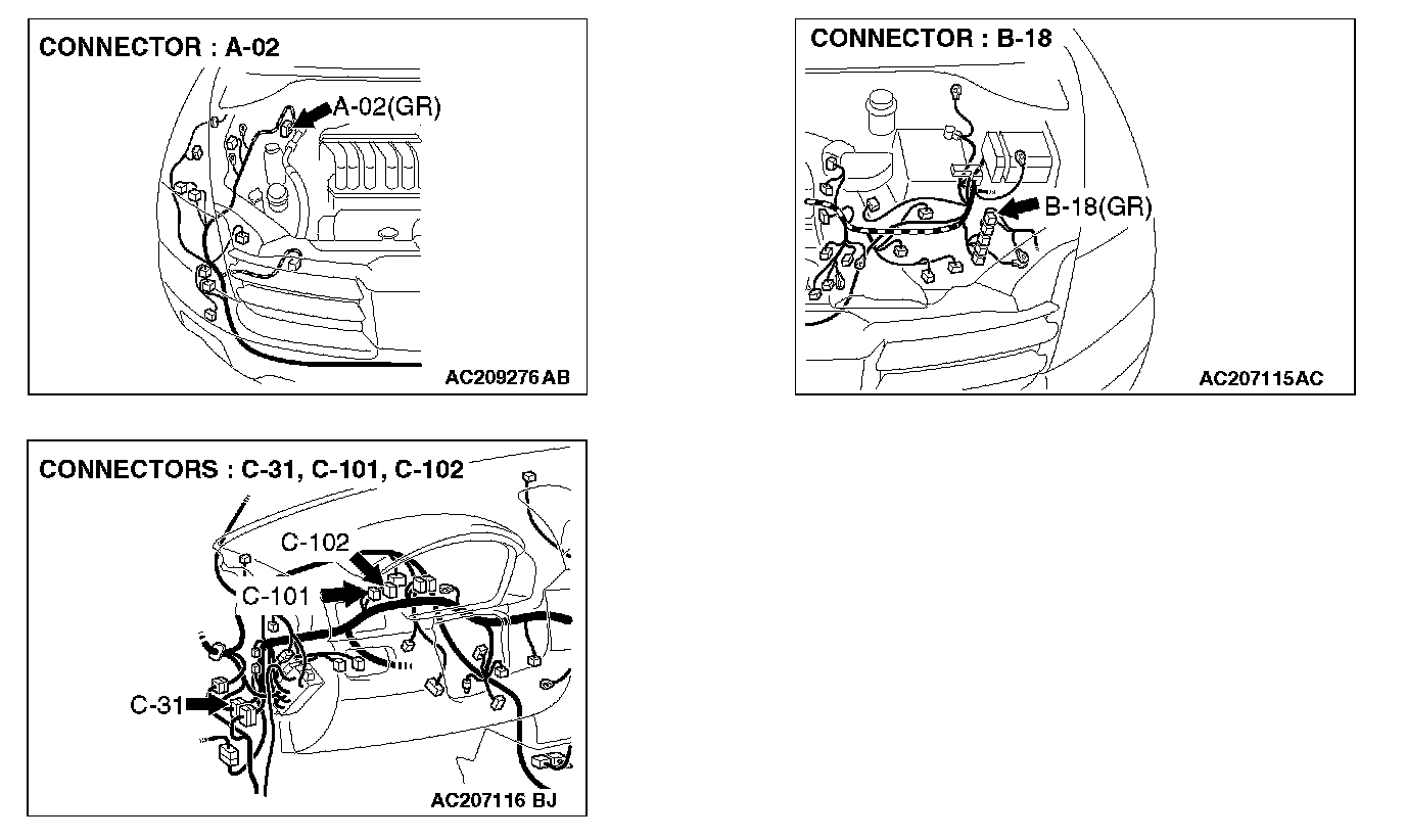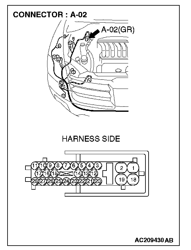 STEP 7. Check powertrain control module connector B-18 and ABS/TCL-ECU connector A-02 for loose, corroded or damaged terminals, or terminals pushed back in the connector.